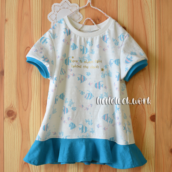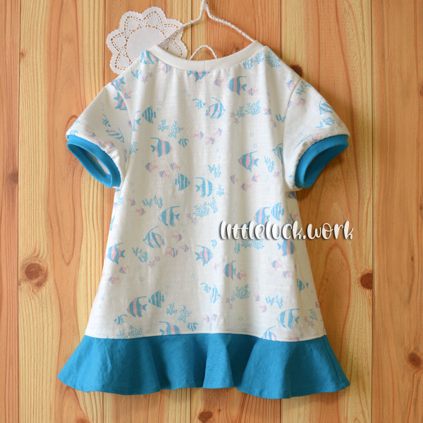 予約便でゲットしたココメールさんの熱帯魚柄でmilimiliさんのフレアTを仕立てました。