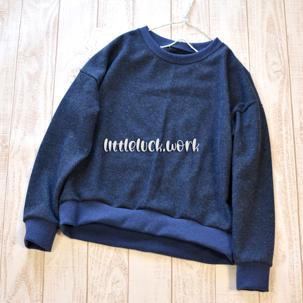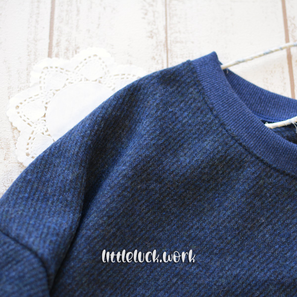 杢の入ったスパンテレコは合わせやすくて重宝しますね。一個前の娘服のズボンのウエストリブも同じものです。